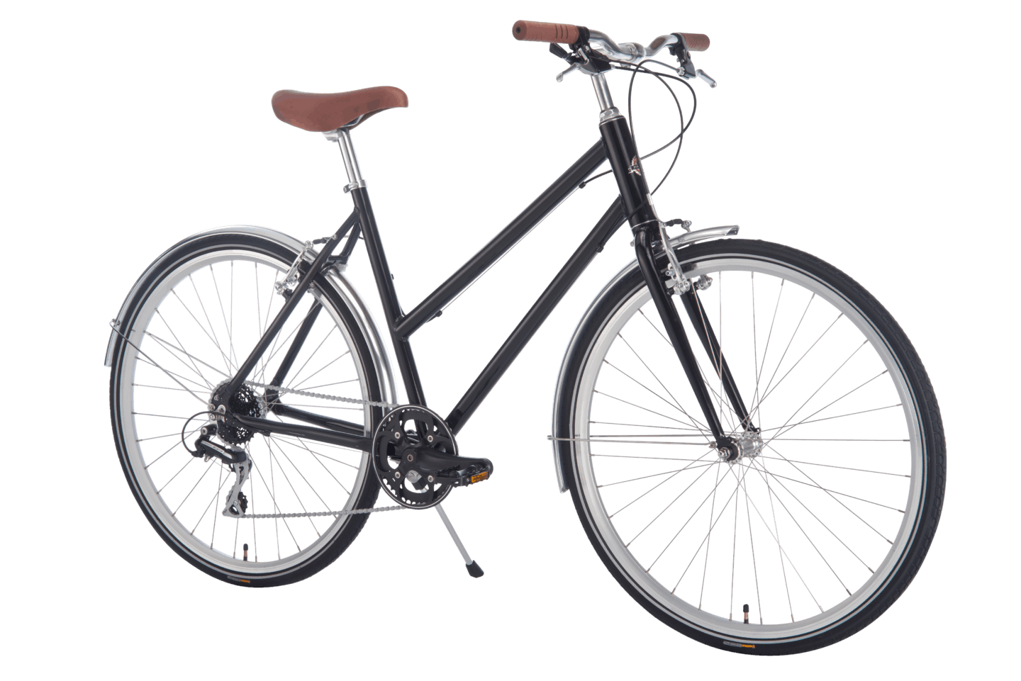 Model Hybrid is made to quickly take you from A to B without fuss. 8 gears, aluminum frame, V-brakes front/rear, and puncture-resistant tires.