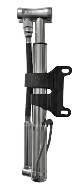 Stålhästen minipump i aluminium och med CNC fräst handtag och pumprör. Minipumpen klarar pumpa både bilventil, racerventil och standardventiler. Pumpen har fäste för montering under flaskhållaren eller enbart i flaskhållarfästet på cykelramen. Denna minipump har ett utfällbart fotstöd för att enklare pumpa däcken.