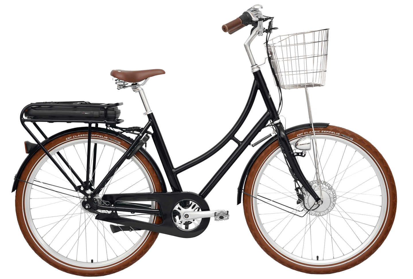 Prima elcykel är också något så ovanligt som en stilig elcykel, om vi tillåts säga det själva. Samma vackra ram som modell Prima, men anpassad för att klara av elektrifieringens krav. Dessutom med sitt batteri i en pakethållaren, så att du slipper cykla runt med en stor plastklump där bak. Självklart är det löstagbart, du behöver inte oroa dig för att behöva kånka hela cykeln till närmaste eluttag när den ska laddas 😃