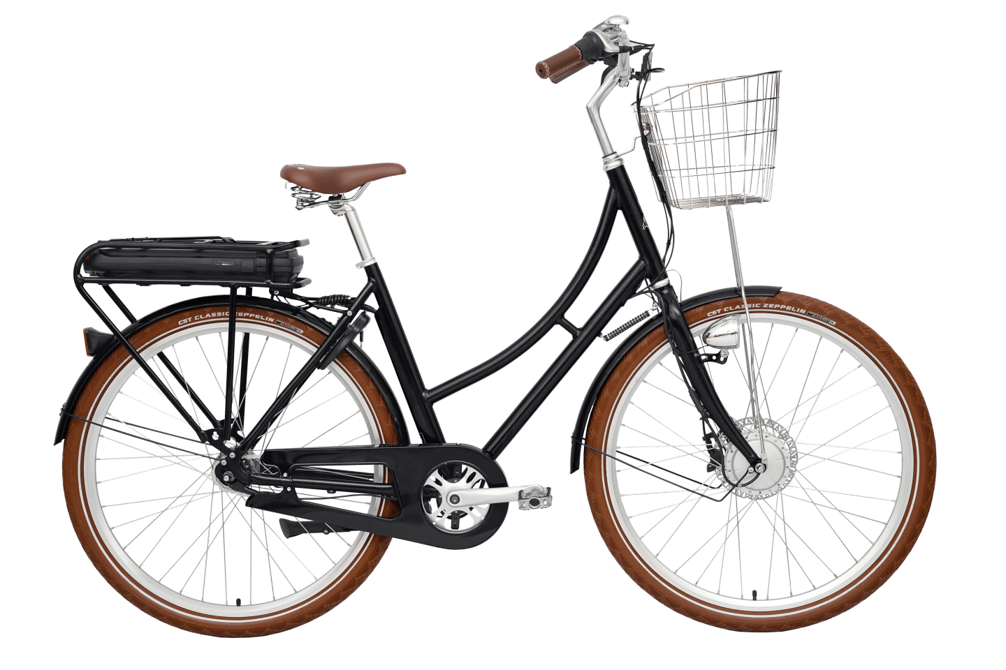 The Prima e-bike is also something as unusual as a stylish e-bike, if we may say so ourselves. The same beautiful frame as the Prima model, but adapted to meet the demands of electrification. And with its battery in a luggage rack, so you don’t have to cycle around with a big lump of plastic in the back. Of course, it’s removable, so you don’t have to worry about having to lug the whole bike to the nearest power outlet when it’s time to charge 😃