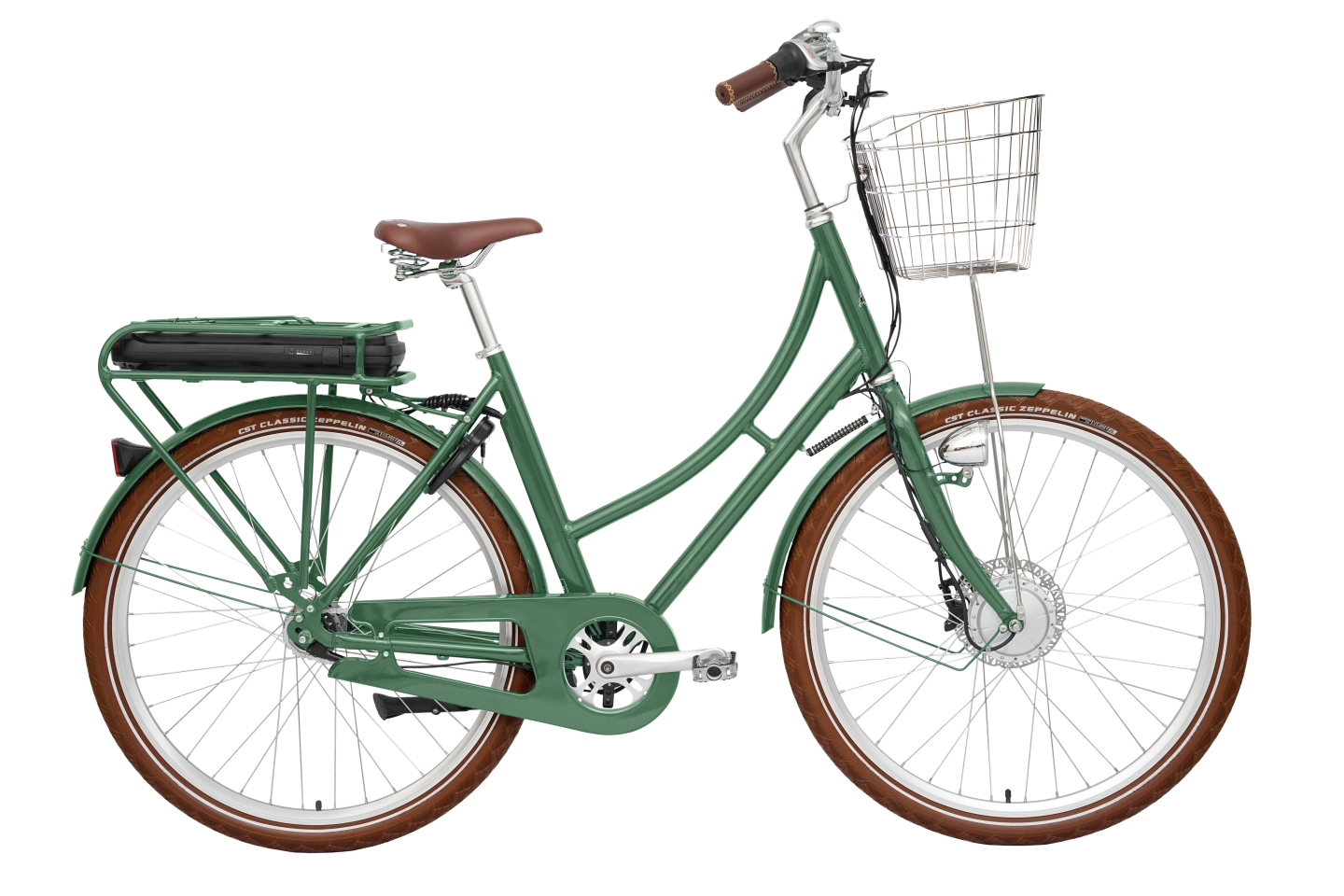 The Prima e-bike is also something as unusual as a stylish e-bike, if we may say so ourselves. The same beautiful frame as the Prima model, but adapted to meet the demands of electrification. And with its battery in a luggage rack, so you don’t have to cycle around with a big lump of plastic in the back. Of course, it’s removable, so you don’t have to worry about having to lug the whole bike to the nearest power outlet when it’s time to charge 😃